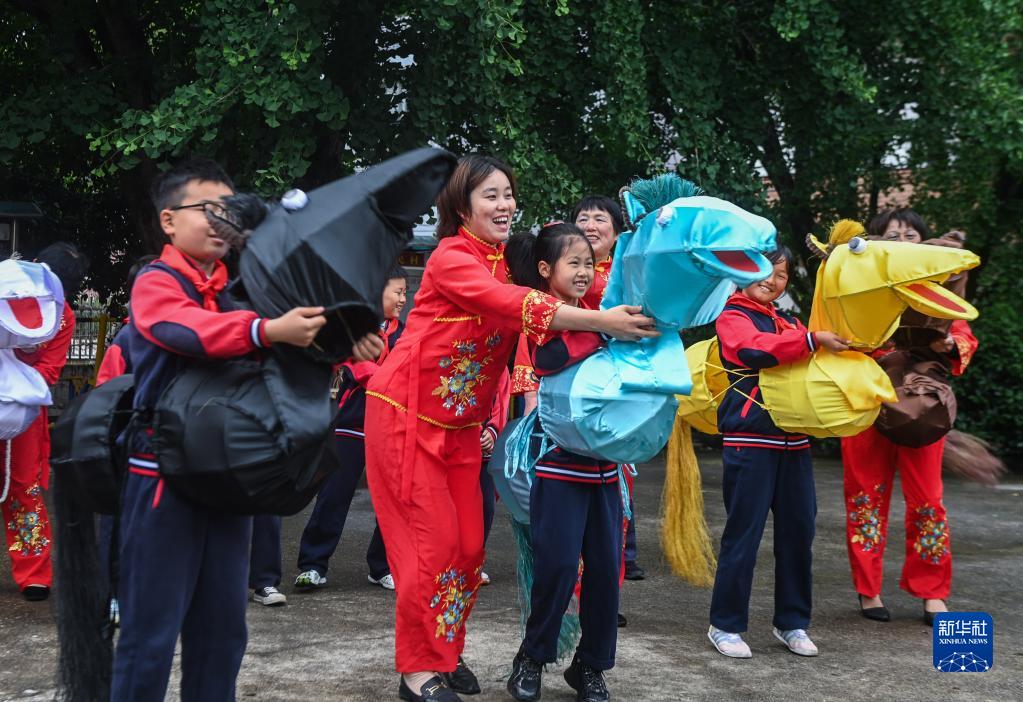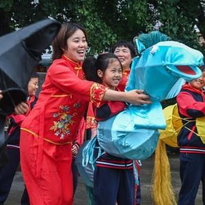 5月24日,長(cháng)興縣煤山鎮中心小學(xué)的學(xué)生在新民村學(xué)習新民馬燈舞蹈。