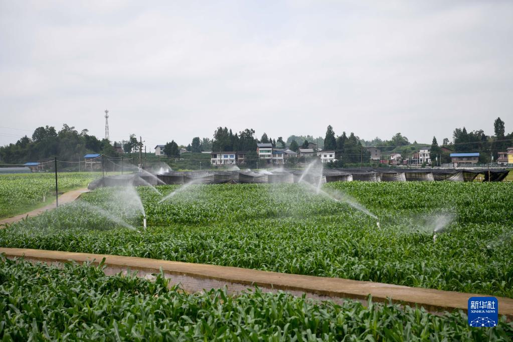 5月24日,在達州達川區萬(wàn)家鎮一大豆玉米帶狀復合種植示范片,自動(dòng)噴灌系統在澆水。