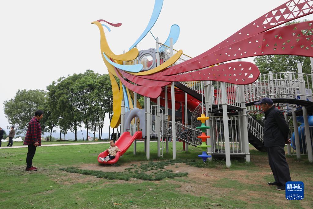 5月24日,在浙江省龍游縣浦山村,小朋友在玩滑梯。
