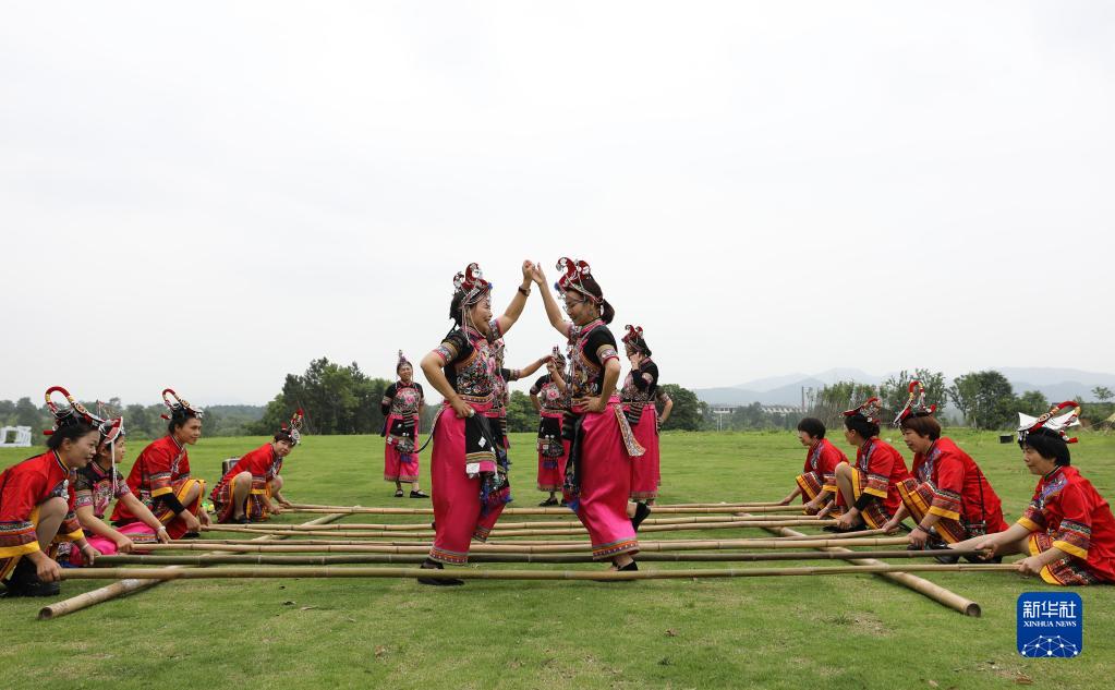 5月24日,在浙江省龍游縣浦山村,當地居民表演民族特色節目。