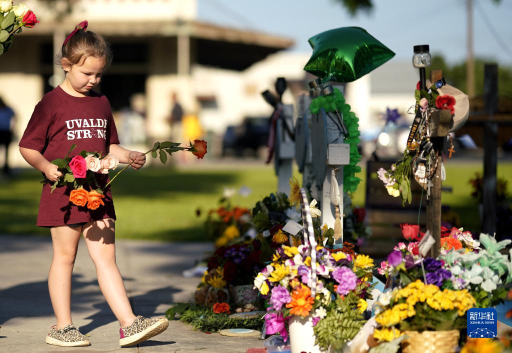 當日是美國尤瓦爾迪大規模校園槍擊事件一周年。2022年5月24日,19名學(xué)生和2名教師在尤瓦爾迪市羅布小學(xué)槍擊事件中遇難。