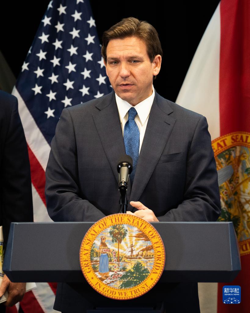 2023年4月17日,美國佛羅里達州長(cháng)德桑蒂斯在佛羅里達州一場(chǎng)活動(dòng)上致辭。