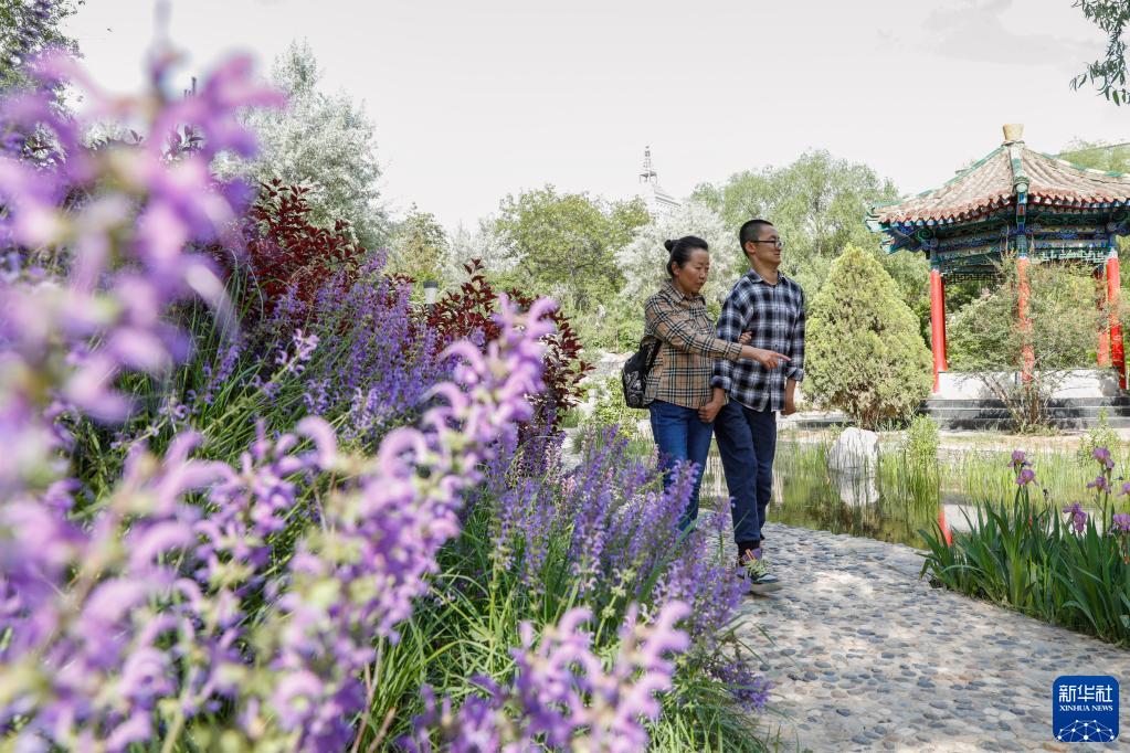 在蘭州大學(xué),謝炎廷和母親劉小鳳在學(xué)校散步(5月12日攝)。新華社記者 方欣 攝