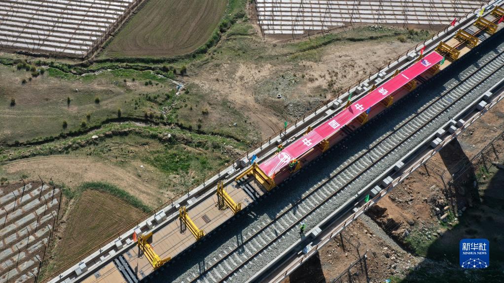 當日,在甘肅省武威市天祝藏族自治縣境內蘭(蘭州)張(張掖)三四線(xiàn)鐵路鋪軌施工現場(chǎng),一體式牽引車(chē)在中鐵一局施工人員的操作下,將一組500米長(cháng)的鋼軌精準鋪設在道床上,標志著(zhù)由中鐵一局承建的蘭張三四線(xiàn)鐵路蘭州至武威段進(jìn)入全線(xiàn)鋪軌階段。
