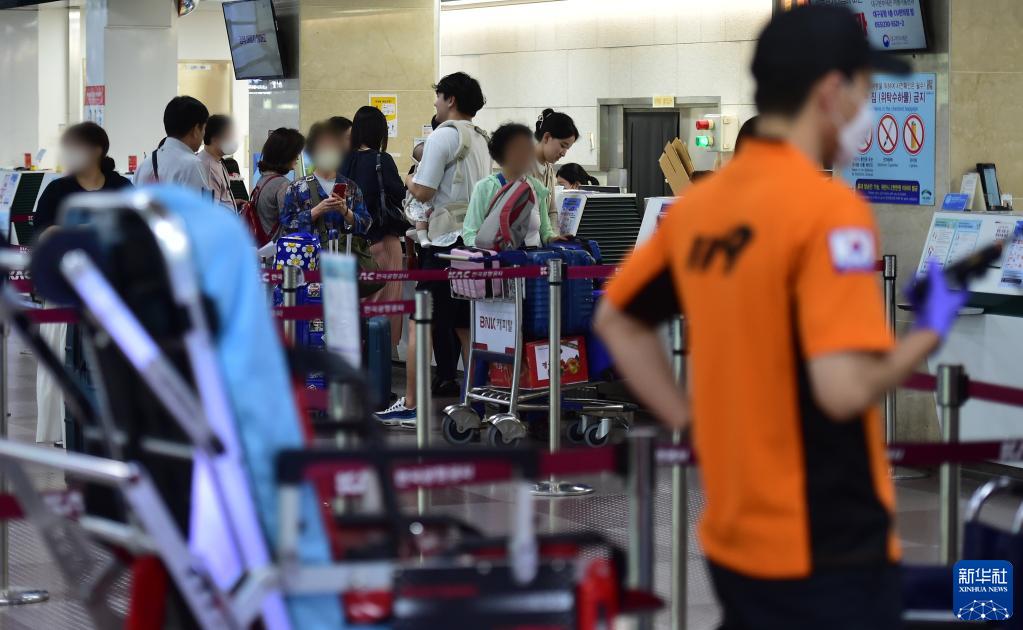 這是5月26日拍攝的韓國大邱機場(chǎng)值機區域。