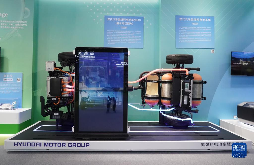 5月26日在中關(guān)村國家自主創(chuàng )新示范區展示中心拍攝的現代汽車(chē)氫燃料電池車(chē)NEXO(展示用切割車(chē))。