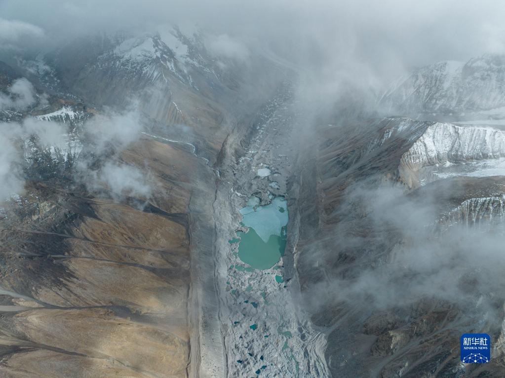 這是在海拔7000米左右高空拍攝的由絨布冰川融水形成的湖泊群(5月25日攝,無(wú)人機照片)。