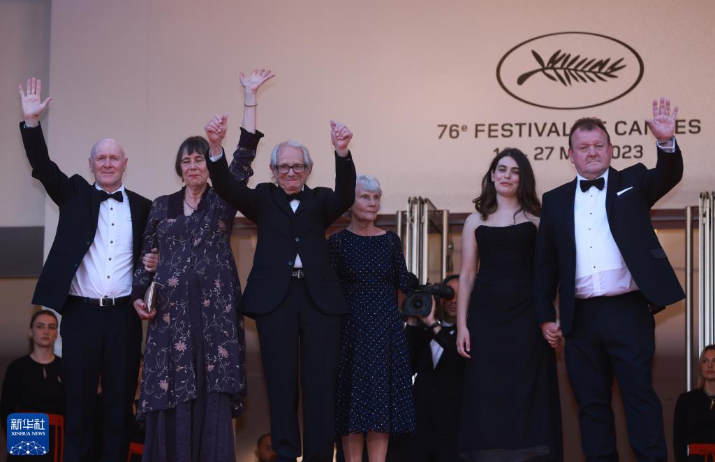 5月26日,在法國戛納舉行的第76屆戛納國際電影節上,英國導演肯·羅奇(左三)攜主創(chuàng )團隊亮相影片《老橡樹(shù)》首映禮紅毯。