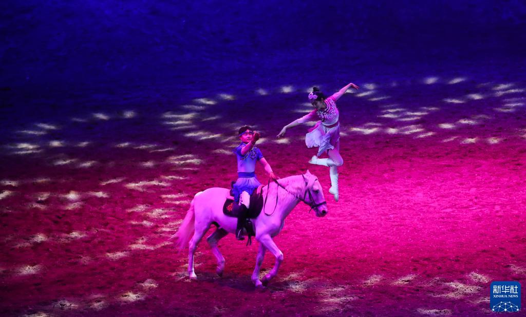 當日,由內蒙古民族藝術(shù)劇院出品的2023年大型馬舞劇《千古馬頌》在呼和浩特上演。該劇以馬術(shù)表演為主,綜合運用了舞蹈、器樂(lè )、雜技等藝術(shù)元素,融合了現代高科技舞臺技術(shù),以全新藝術(shù)形式生動(dòng)演繹了人與馬相遇、相識、相伴、不離不棄、生死與共的情感歷程,體現了人、馬與自然和諧共存的精神。