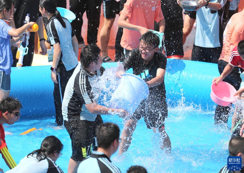 6月2日,學(xué)生們享受潑水活動(dòng)帶來(lái)的快樂(lè )。