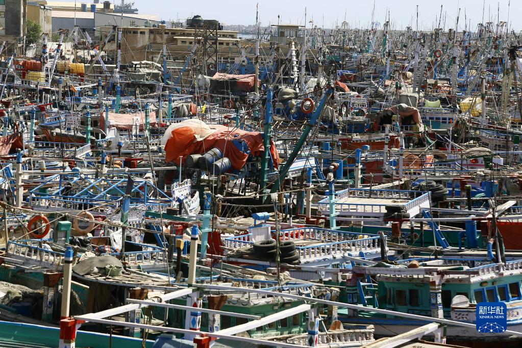 6月13日,在巴基斯坦信德省特達地區,漁船停泊在漁港內。