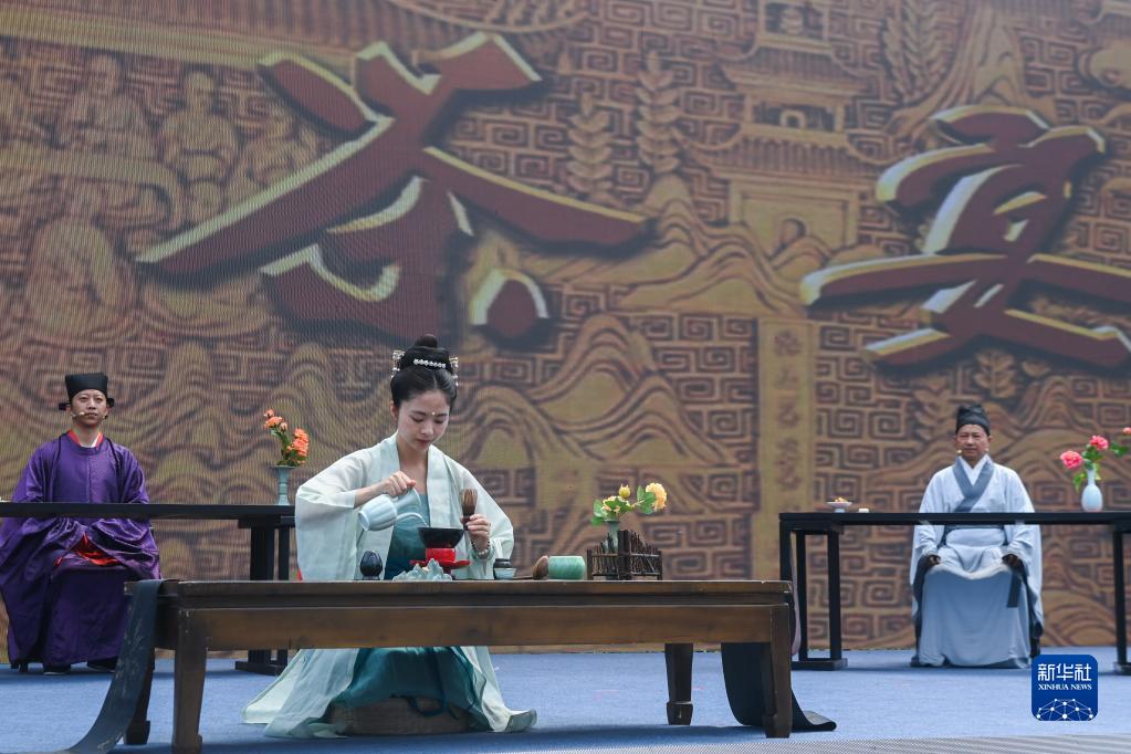 6月9日,2023年“文化和自然遺產(chǎn)日”杭州(拱墅)主場(chǎng)系列活動(dòng)在杭州運河亞運體育公園開(kāi)啟。這是活動(dòng)現場(chǎng)舉行的入選國家級非物質(zhì)文化遺產(chǎn)名錄的《徑山茶宴》展示。