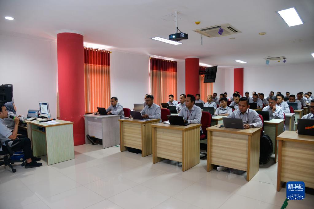 6月7日,在位于印度尼西亞茉莉芬市的印尼鐵路理工學(xué)院,雅萬(wàn)高鐵動(dòng)車(chē)組司機培訓班學(xué)員參加培訓。
