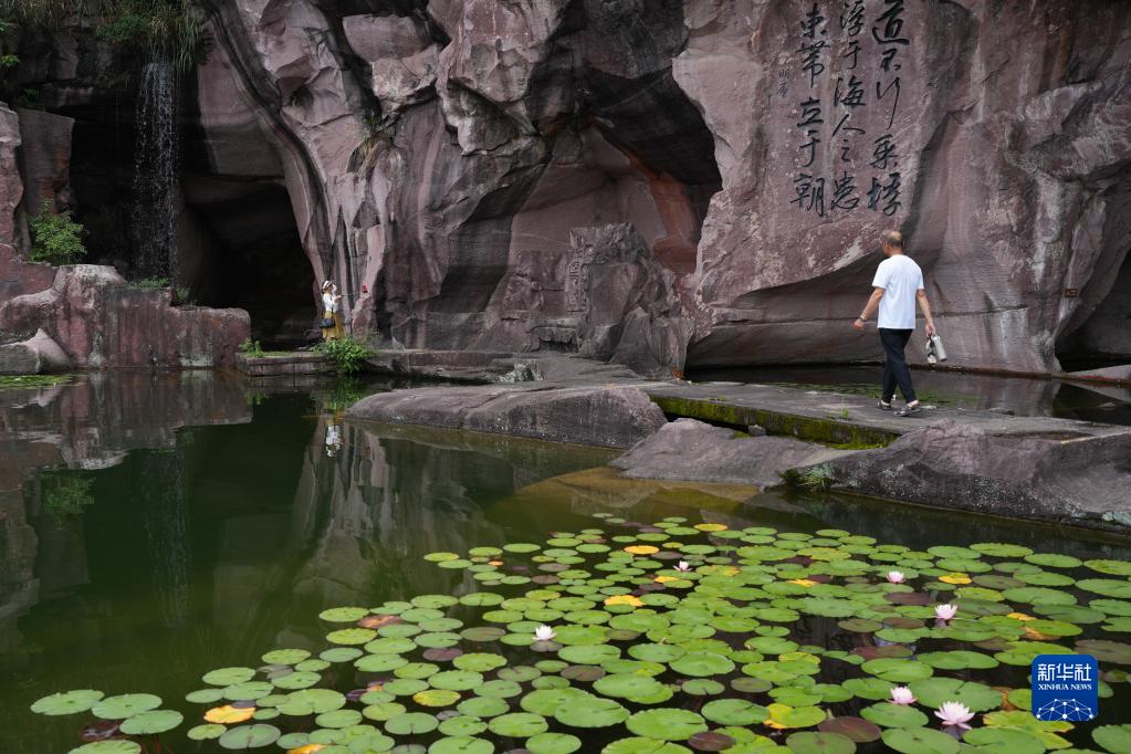 6月14日,游客在蛇蟠島的一個(gè)由廢棄采石坑改建的景區內觀(guān)光。