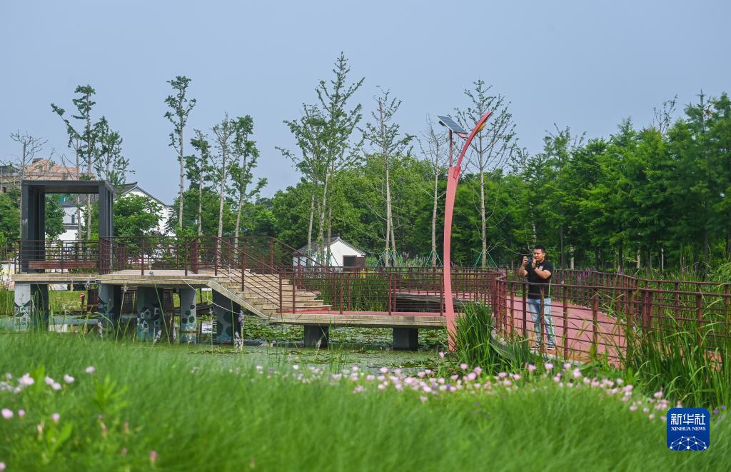 6月14日,游客在嘉興市南湖區鳳橋鎮聯(lián)豐村的村落景區游玩。