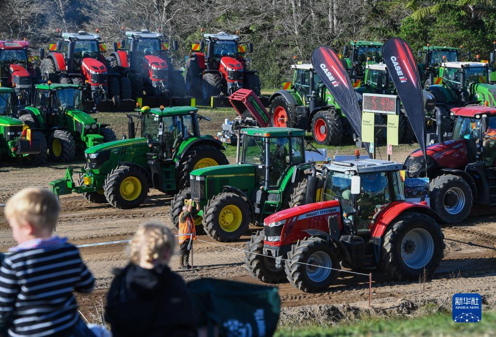 6月14日,在新西蘭漢密爾頓舉行的國際農業(yè)博覽會(huì )上,人們觀(guān)看拖拉機牽引大賽。新華社記者 郭磊 攝