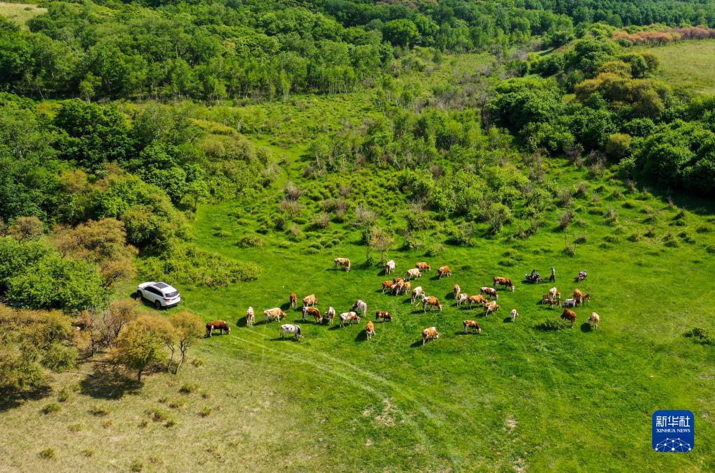 6月15日,牛群在草原上覓食(無(wú)人機照片)。