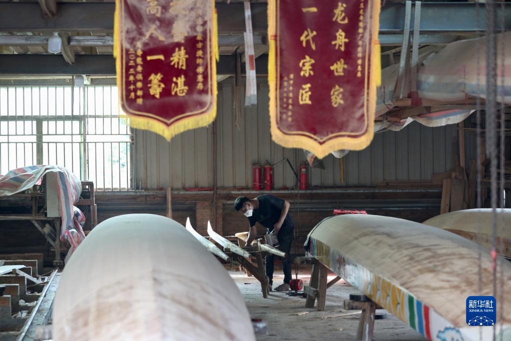 端午節臨近,走進(jìn)位于福建省福州市閩侯縣大樟溪畔的傳統龍舟制作村方莊村,木材加工時(shí)的推刨聲、切割聲、敲擊聲此起彼伏,村里的四家大型龍舟加工廠(chǎng)正加緊趕制端午節龍舟訂單。每年有200多艘龍舟從這里銷(xiāo)往全國,以及美國、日本、新加坡等地。