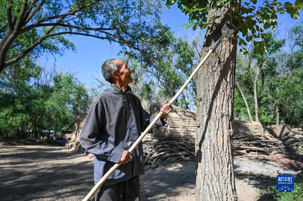 6月14日,曹扎娃在給樹(shù)木清理枝杈。