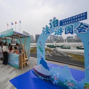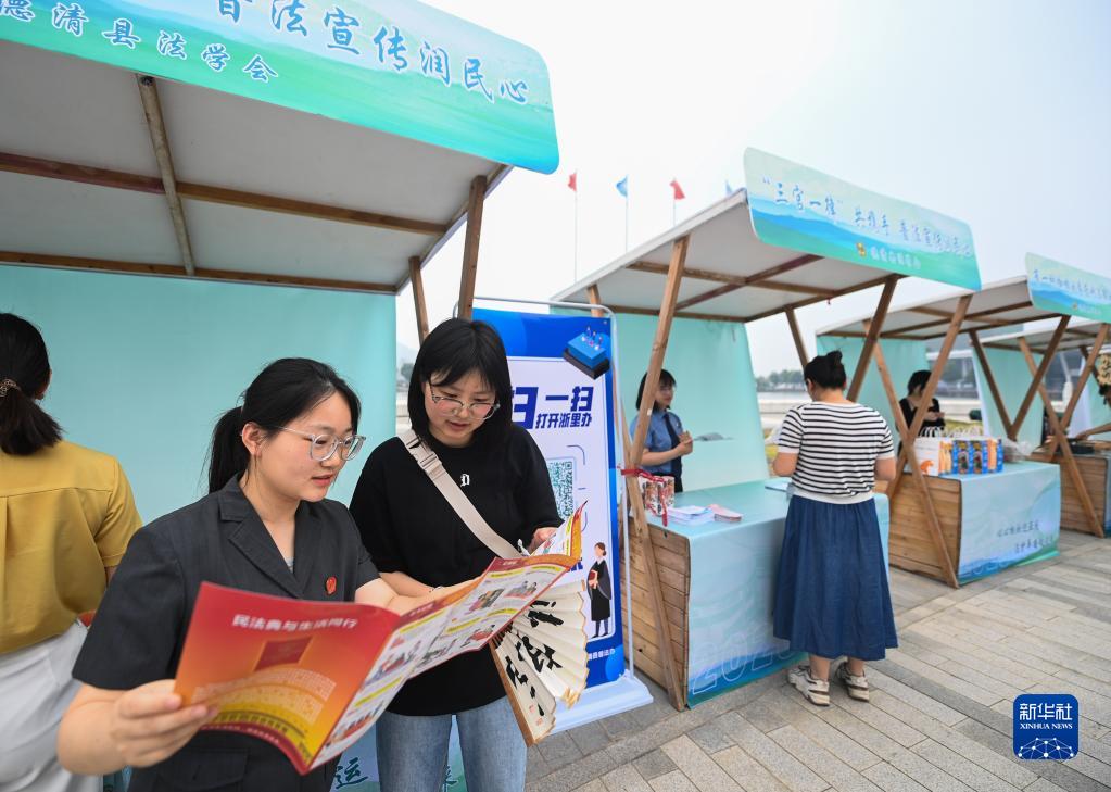 當日,在浙江省德清縣地理信息小鎮德清國際會(huì )議中心,以“心心相融迎亞運 法護平安向未來(lái)”為主題的浙江省“2023年青年普法志愿者法治文化基層行”正式啟動(dòng)。啟動(dòng)儀式現場(chǎng),德清縣各鄉鎮、街道多部門(mén)的青年普法志愿者進(jìn)行宣誓,現場(chǎng)還舉行了法治游園會(huì )等系列普法活動(dòng)。