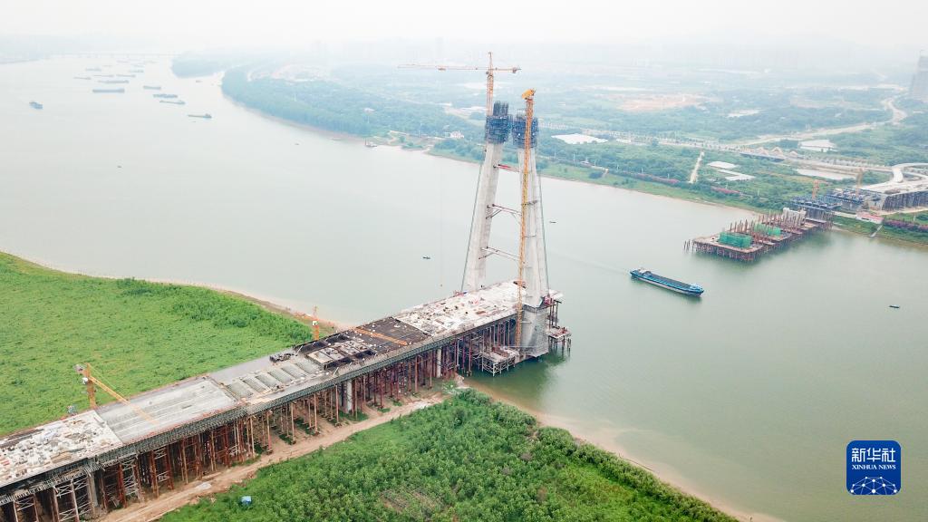 這是6月16日拍攝的香爐洲大橋項目建設現場(chǎng)(無(wú)人機照片)。
