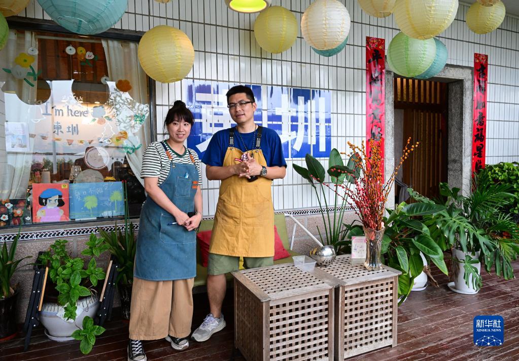 曾崇信(右)和妻子吳孟真在他們的“又見(jiàn)一炊煙”咖啡生活館(6月14日攝)。