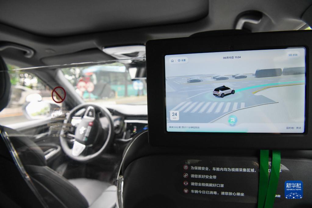 蘿卜快跑無(wú)人駕駛車(chē)輛行駛在深圳市坪山區的道路上(6月15日攝)。