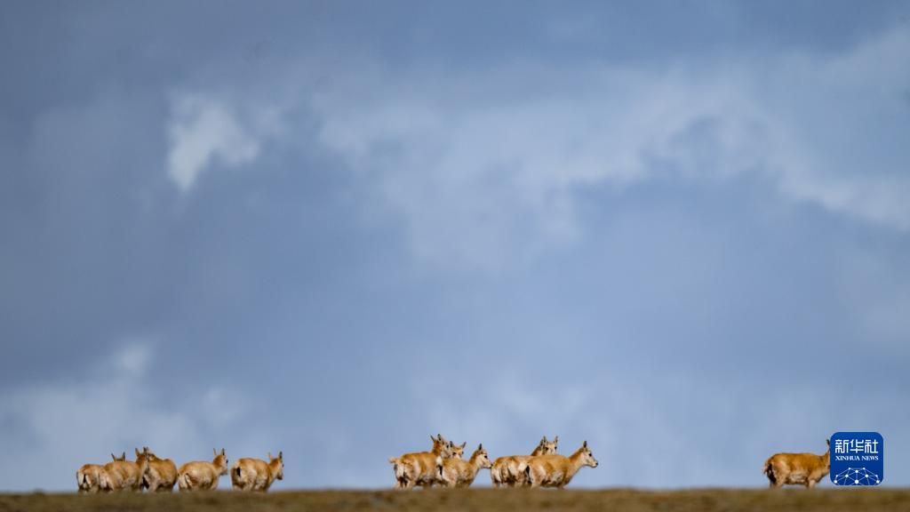 這是6月17日在可可西里卓乃湖區域拍攝的一群藏羚羊。