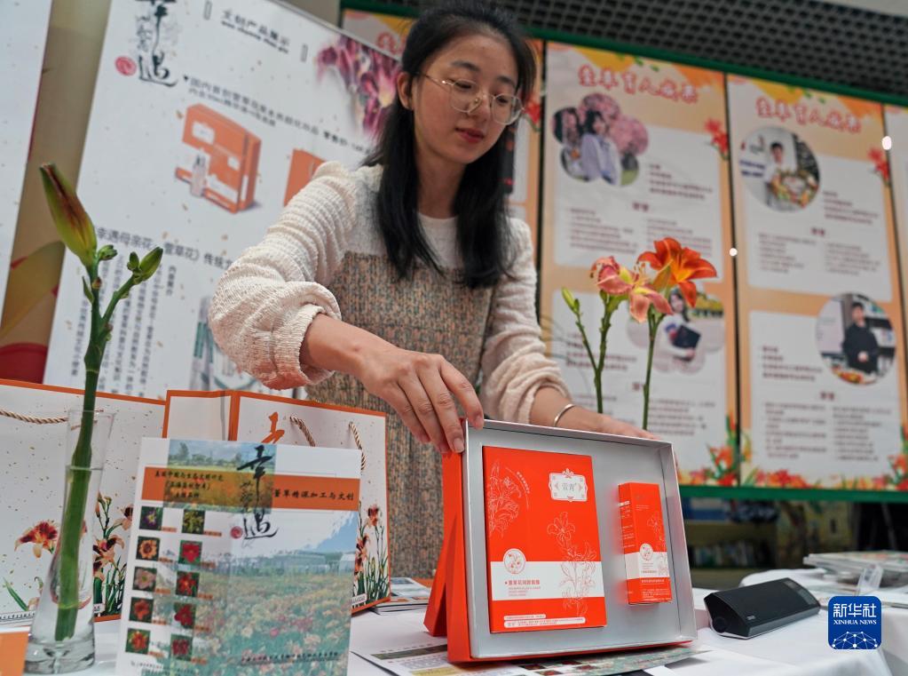 6月18日,學(xué)生在上海應用技術(shù)大學(xué)展示學(xué)校研發(fā)的萱草精深加工產(chǎn)品。