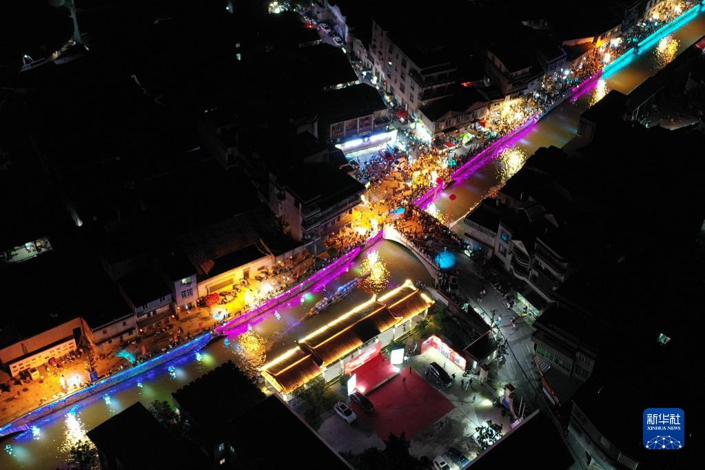 6月17日晚,在福建省福州市長(cháng)樂(lè )區三溪村,數十艘龍舟在小溪中競渡,南溪兩岸及石橋上人潮如涌,熱鬧非凡。夜賽龍舟是福建福州長(cháng)樂(lè )區三溪村獨有的端午習俗,已經(jīng)沿襲600多年。每年端午節前后,當地村民舉行夜賽龍舟活動(dòng),借此祈盼風(fēng)調雨順、平安健康。