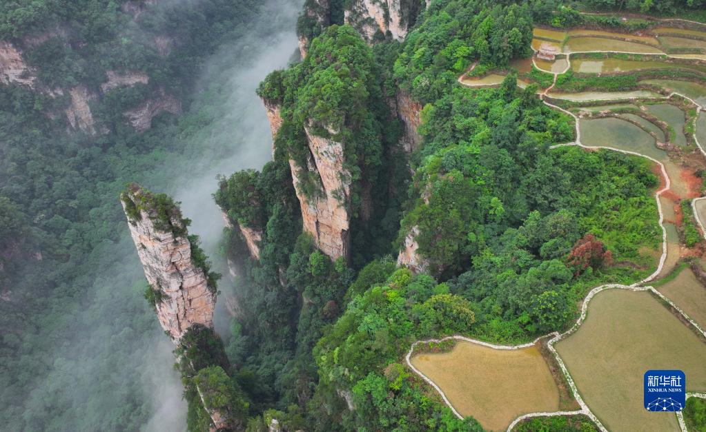 近日,湖南張家界迎來(lái)連續降雨。雨后,云霧在連綿聳立的峰林間飄蕩,懸崖峭壁之上的農田在云霧中若隱若現,構成一幅幅獨特的生態(tài)畫(huà)卷。