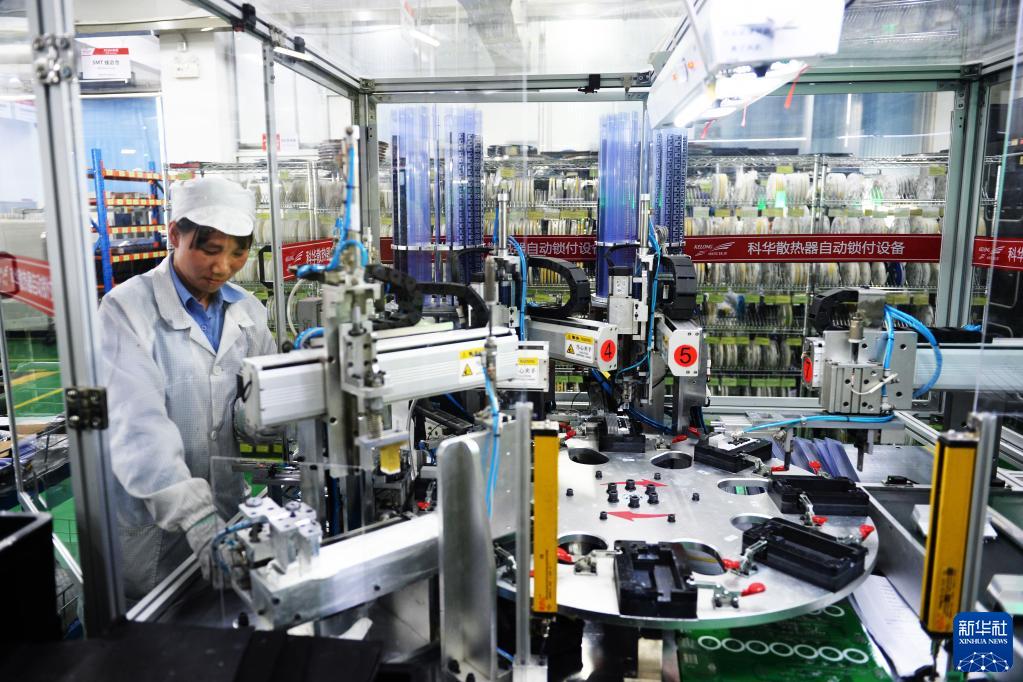 6月19日,漳州科華電氣技術(shù)有限公司工作人員在智能化車(chē)間生產(chǎn)電路板設備。