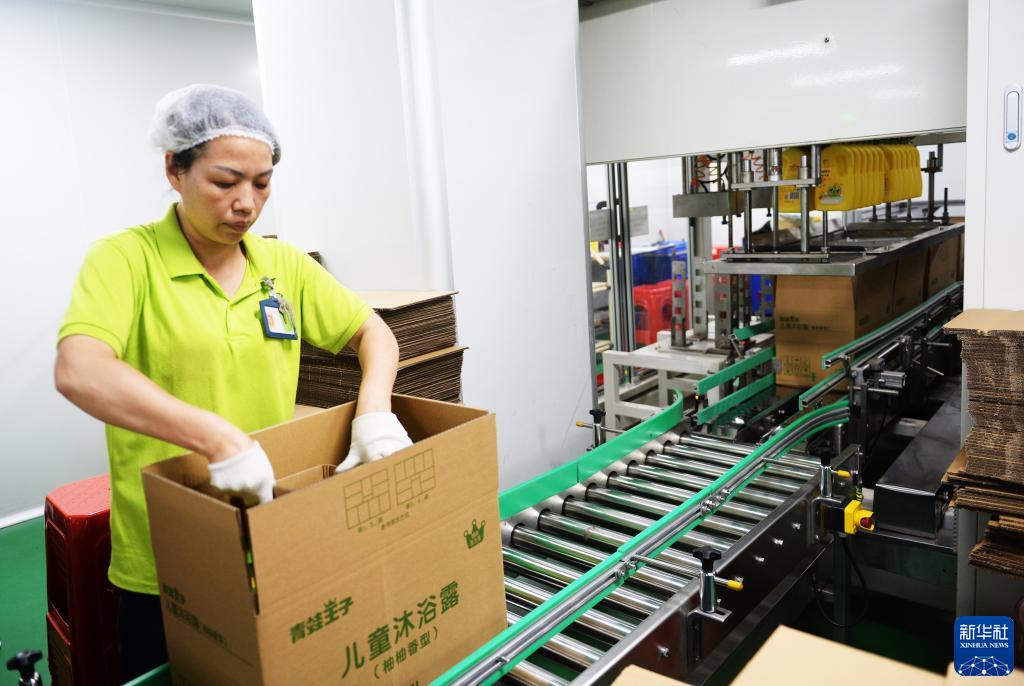 6月18日,在位于福建漳州的青蛙王子集團,工人在洗護工廠(chǎng)智能化車(chē)間工作。
