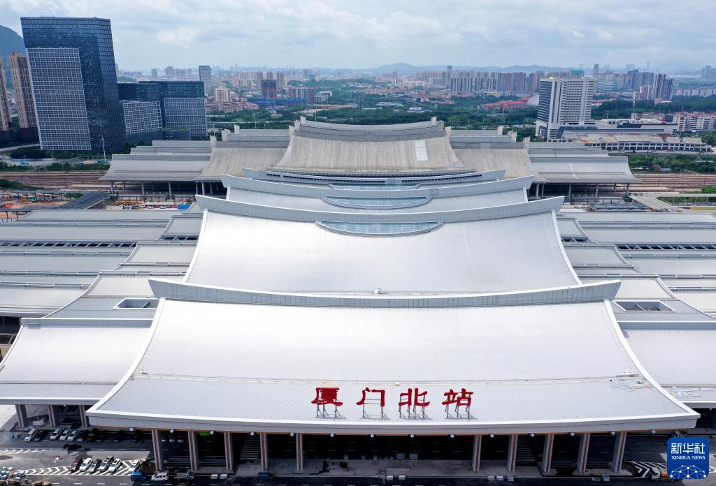 這是6月19日拍攝的福廈高鐵新建廈門(mén)北站(無(wú)人機照片)。