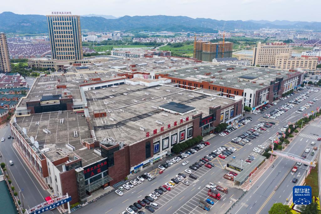 6月19日拍攝的花園紅木家具城(無(wú)人機照片)?;▓@村是“中國紅木家具第一村”,已形成紅木家具全產(chǎn)業(yè)鏈和產(chǎn)業(yè)群。截至2022年底,花園村有紅木家具以及木制品行業(yè)1871家,占全村個(gè)私工商戶(hù)的63.42%。