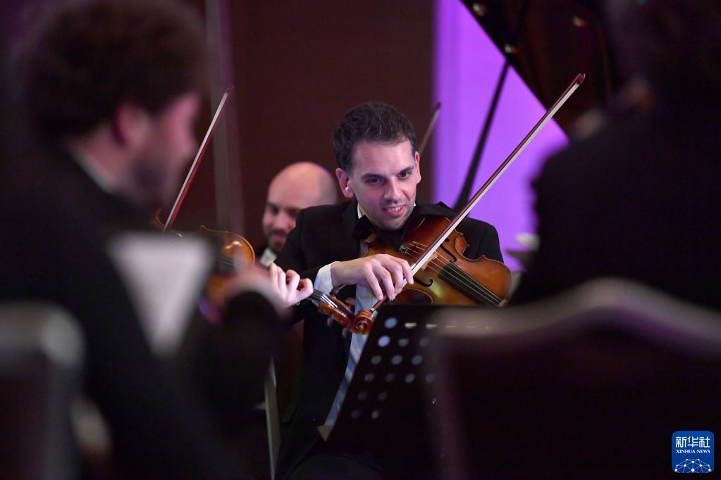 6月18日,在瑞士日內瓦,瑞士圣普雷室內樂(lè )團在“唱響‘一帶一路’的贊歌”音樂(lè )招待會(huì )上演奏。