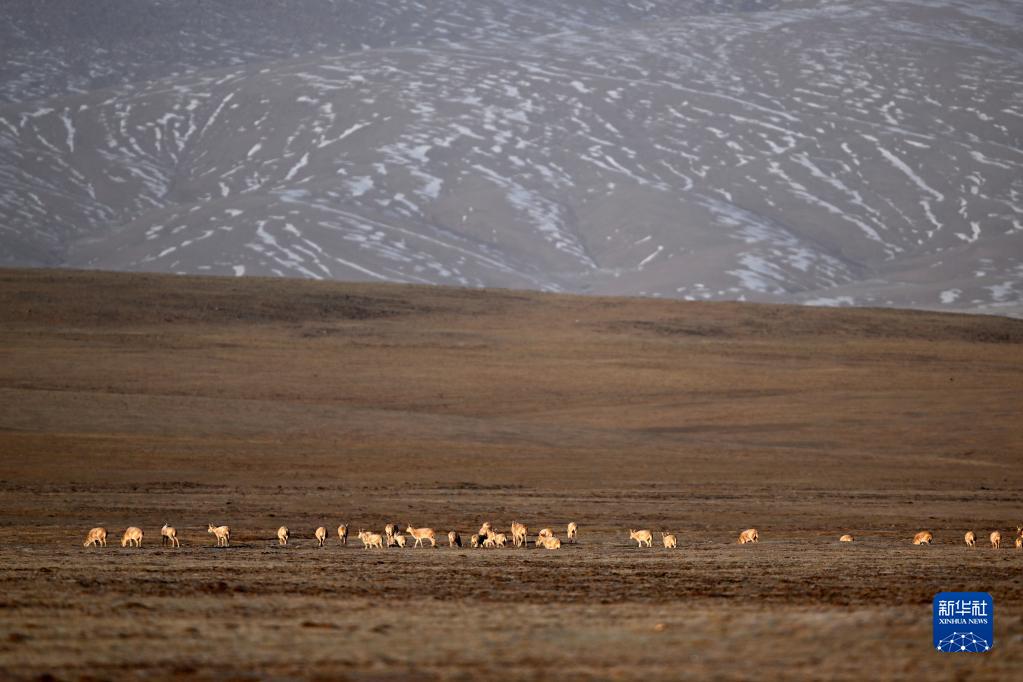一群藏羚羊在可可西里卓乃湖區域活動(dòng)(6月18日攝)。