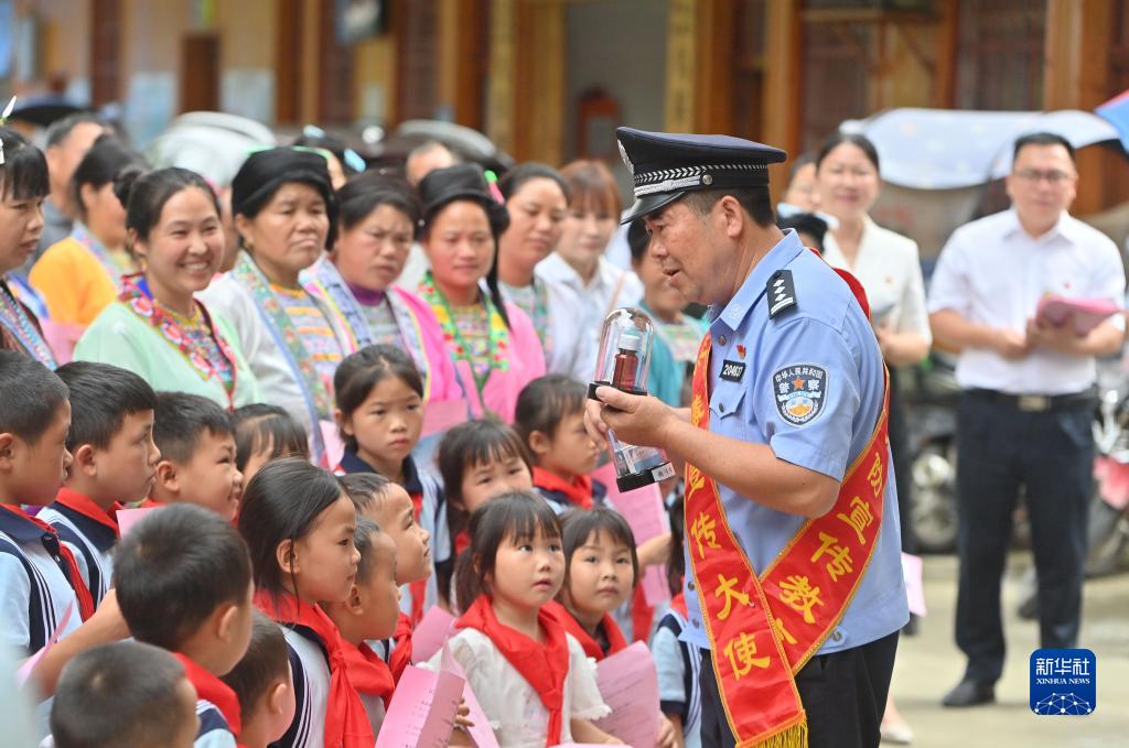 在第36個(gè)國際禁毒日來(lái)臨之際,廣西柳州市融水苗族自治縣桿洞鄉烏英苗寨開(kāi)展禁毒知識進(jìn)苗寨宣傳教育活動(dòng),通過(guò)講解禁毒知識、鑒別毒品樣品、發(fā)放宣傳資料等方式,幫助村民提高識別毒品能力,增強禁毒意識。