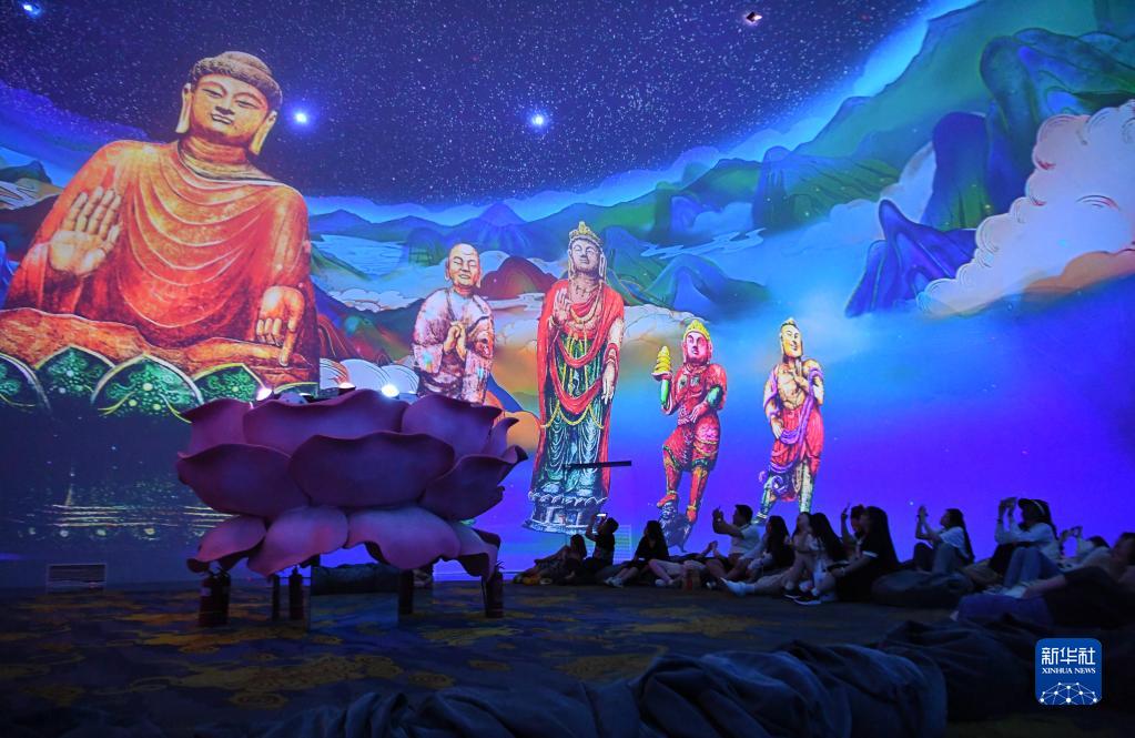 2023年6月6日,游客在洛陽(yáng)無(wú)上龍門(mén)沉浸式體驗館觀(guān)看影片。