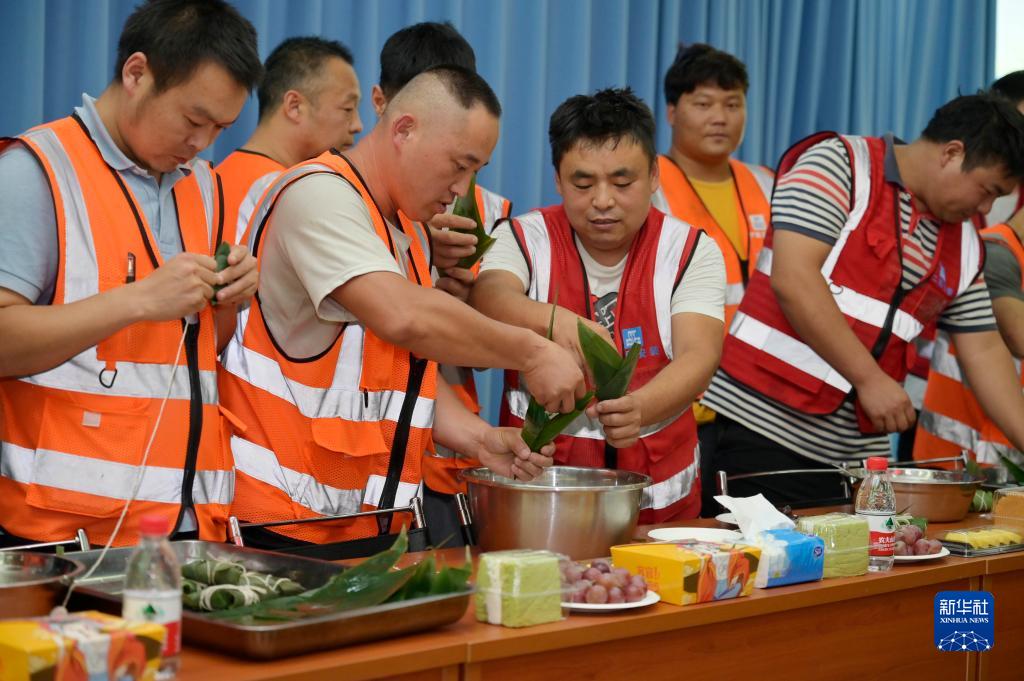 6月21日,在北京市昌平區中建二局安裝公司保利未來(lái)科技城項目舉行的“粽葉飄香·情暖一線(xiàn)”活動(dòng)上,一線(xiàn)建設者在包粽子。