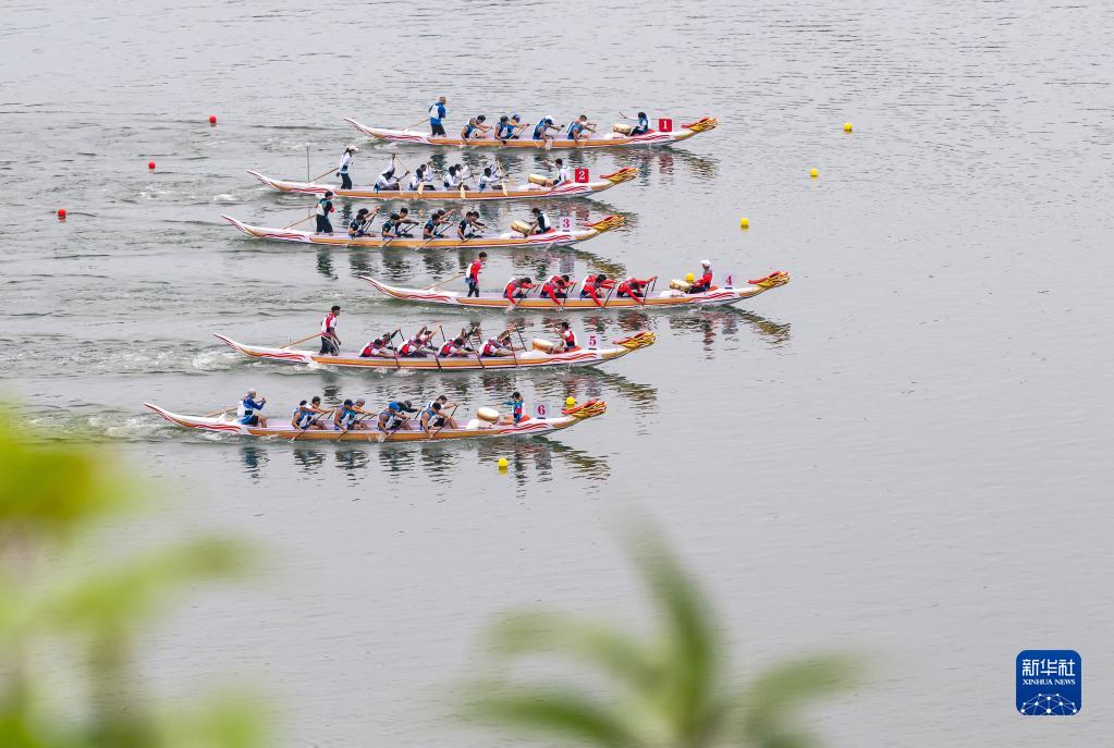 6月21日,來(lái)自海內外的龍舟代表隊在秭歸縣徐家沖港灣參加2023年國際劃聯(lián)龍舟世界杯預賽。