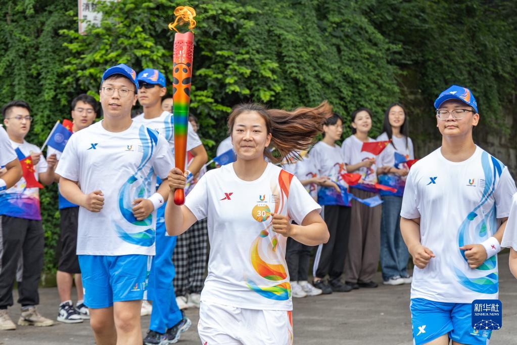 當日,成都第31屆世界大學(xué)生夏季運動(dòng)會(huì )火炬傳遞重慶站在重慶大學(xué)舉行。