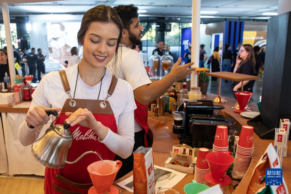 6月23日,工作人員在巴西圣保羅舉行的咖啡節上制作咖啡。