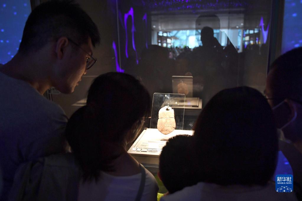 6月24日,觀(guān)眾在參觀(guān)展出的距今約8000年的刻符龜甲。