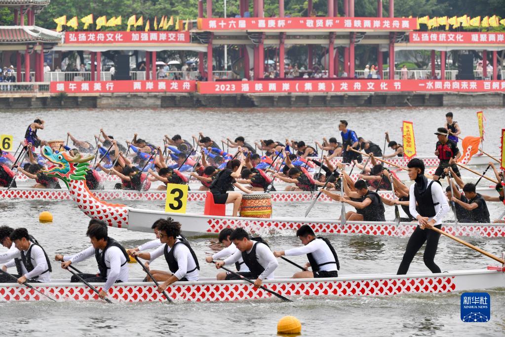 賽龍舟是端午節的傳統習俗,也是一項深受群眾喜愛(ài)的水上運動(dòng)。聲聲龍舟鼓,濃濃兩岸情。閩臺血脈相連、習俗相近,兩岸槳手同舟共濟、同心奮力,將端午節日氣氛推向高潮。