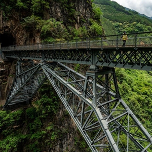 滇越鐵路是云南省第一條鐵路,米軌火車(chē)已在這條鐵路上穿行百余年。在滇越鐵路屏邊縣段,有一座標志性的“人字橋”,在懸崖峭壁間挺立百余年。