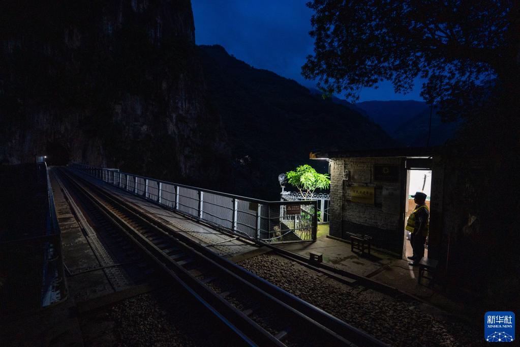 穿上工作服,拿著(zhù)手電筒,穿行在隧道和橋梁間,這是楊有光再熟悉不過(guò)的工作內容?;疖?chē)駛經(jīng)“人字橋”前后,須從兩個(gè)隧道穿過(guò)。為保障行車(chē)安全,楊有光不僅要檢查橋面狀況,還需要精準把握隧道內的情況。他要穿行在隧道內外,巡查大橋整體狀況,沿著(zhù)陡峭的階梯走到橋下,察看零部件狀況?;疖?chē)駛來(lái)時(shí),楊有光站在自己約3平米的值班室門(mén)口跨立候車(chē),目視火車(chē)駛過(guò)“人字橋”,并將通過(guò)時(shí)間記錄下來(lái)。