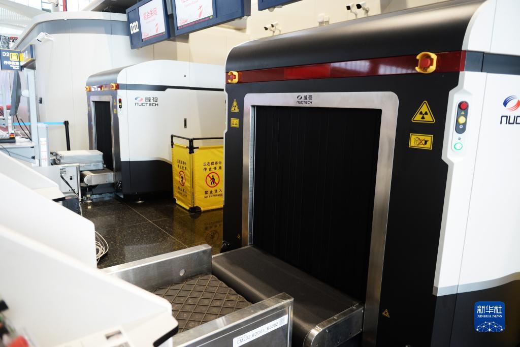 這是6月25日在美蘭國際機場(chǎng)拍攝的已安裝完畢的國內航班申報柜臺托運物品查驗設備。