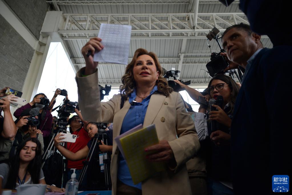 6月25日,全國希望聯(lián)盟候選人桑德拉·托雷斯在危地馬拉首都危地馬拉城一處投票站投票。