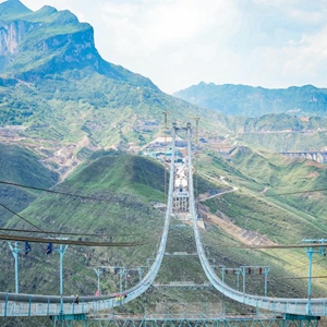 牂牁江大橋位于貴州省晴隆縣和普安縣交界處,大橋全長(cháng)1849米,主跨1080米。